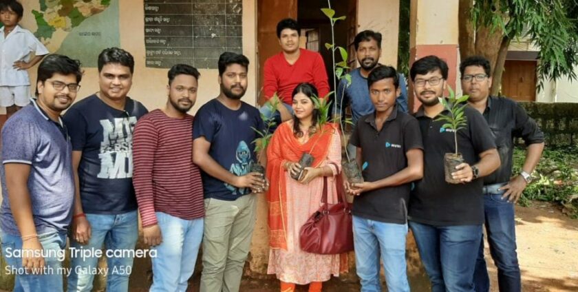 It rains the entire August in Odisha and it was the best time for us to go for our plantation program. We decided to start with 100 trees and picked up a government school in nearby village. We chose the school as the school had boundaries and the school committee assured us that they would care for the plants post plantation program. Although, we fenced the plants with tree guards after the plantation to ensure protection of the plants from playing kids, stray dogs, cattle or cows, if any.